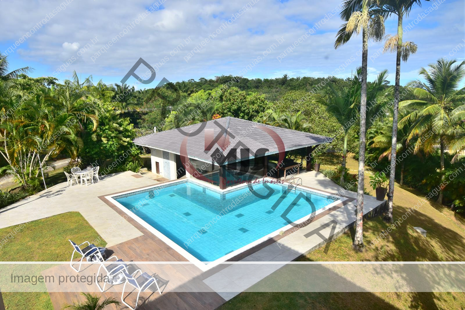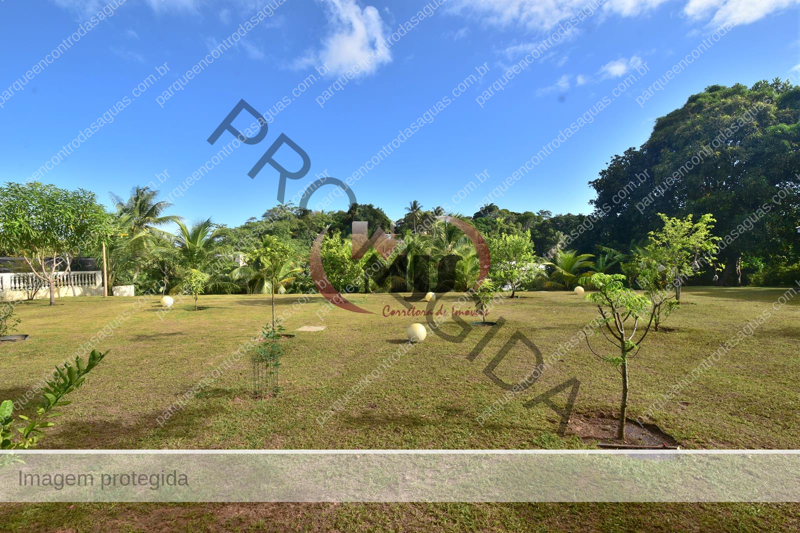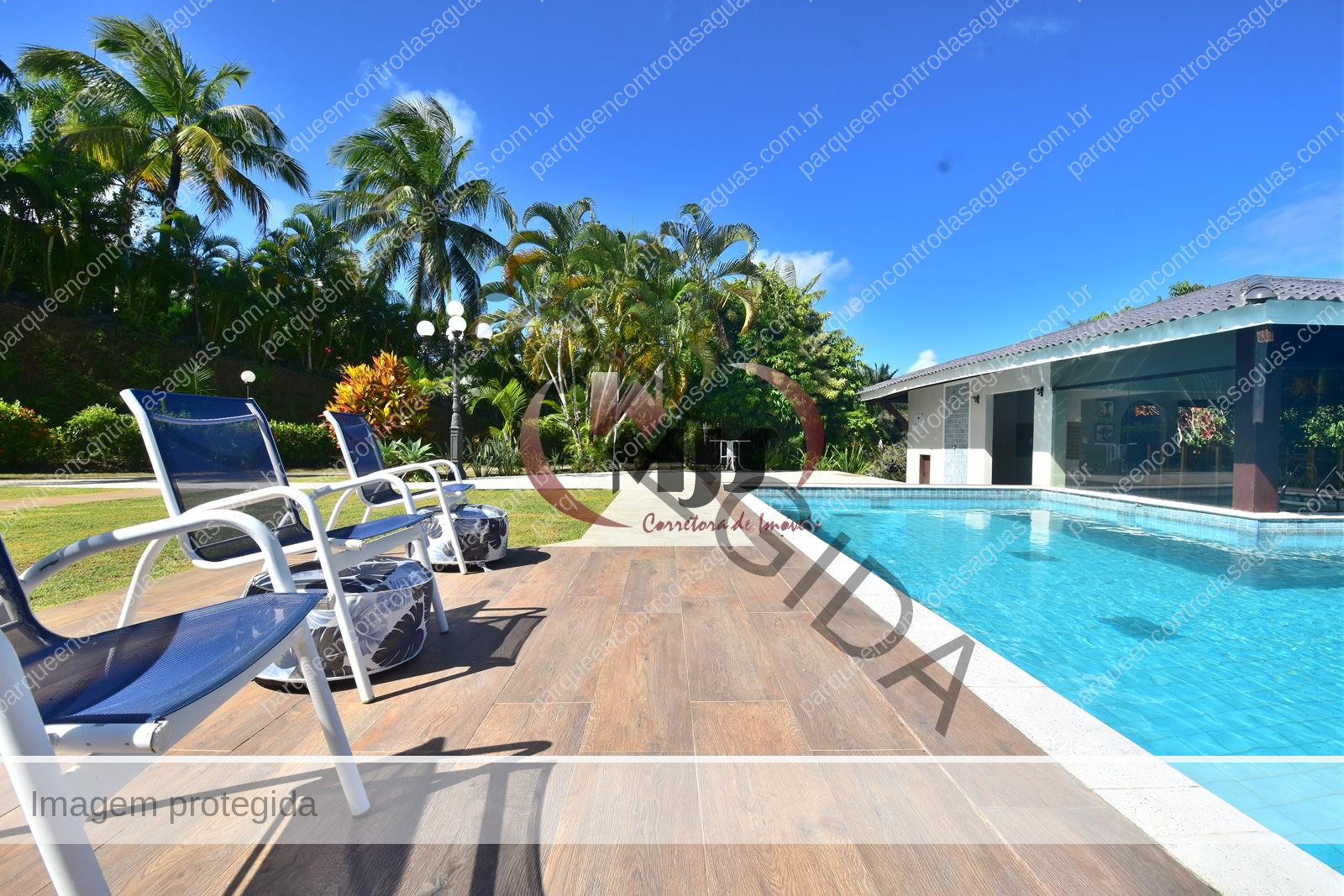 Condomínio Parque Encontro das Águas Lauro de Freitas (5,5km do Aeroporto de Salvador). Com terreno maravilhoso com 5.300m², numa das melhores quadras do condomínio, repleto de árvores frutíferas e pomar. Casa com 6 suítes sendo 3 no térreo e 3 no primeiro andar. A suíte master tem closet e varanda. Sala de estar e sala de jantar. Sala de Tv com escritório. Lavabo. Ampla cozinha gourmet. Tem também área de serviço, lavanderia, garagem coberta para 2 carros. Na área externa possui também piscina com amplo deck e quiosque com churrasqueira e banheiro. Painéis de geração de energia solar com 2 usinas on-grid totalizando 18kWp. Tomadas para carregamento de veículo elétrico/hibrido plugin na garagem.. Área construída total: 940m².