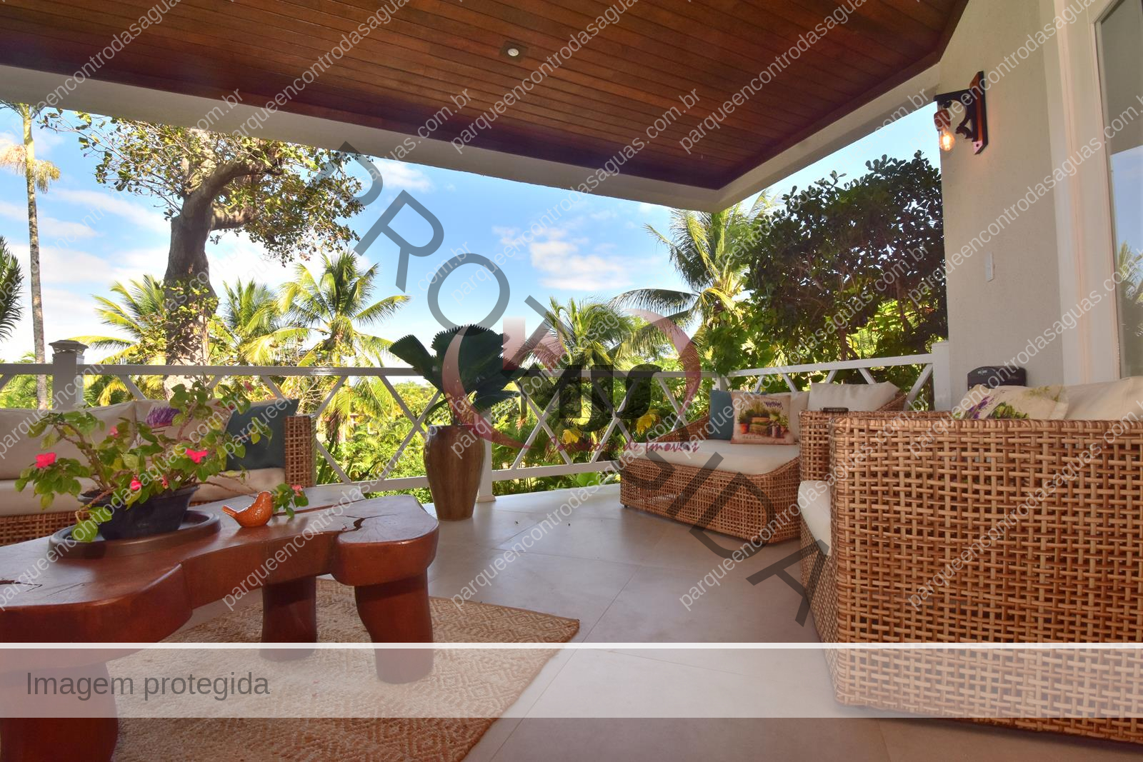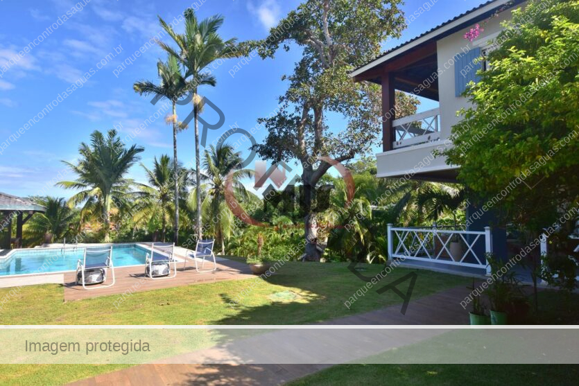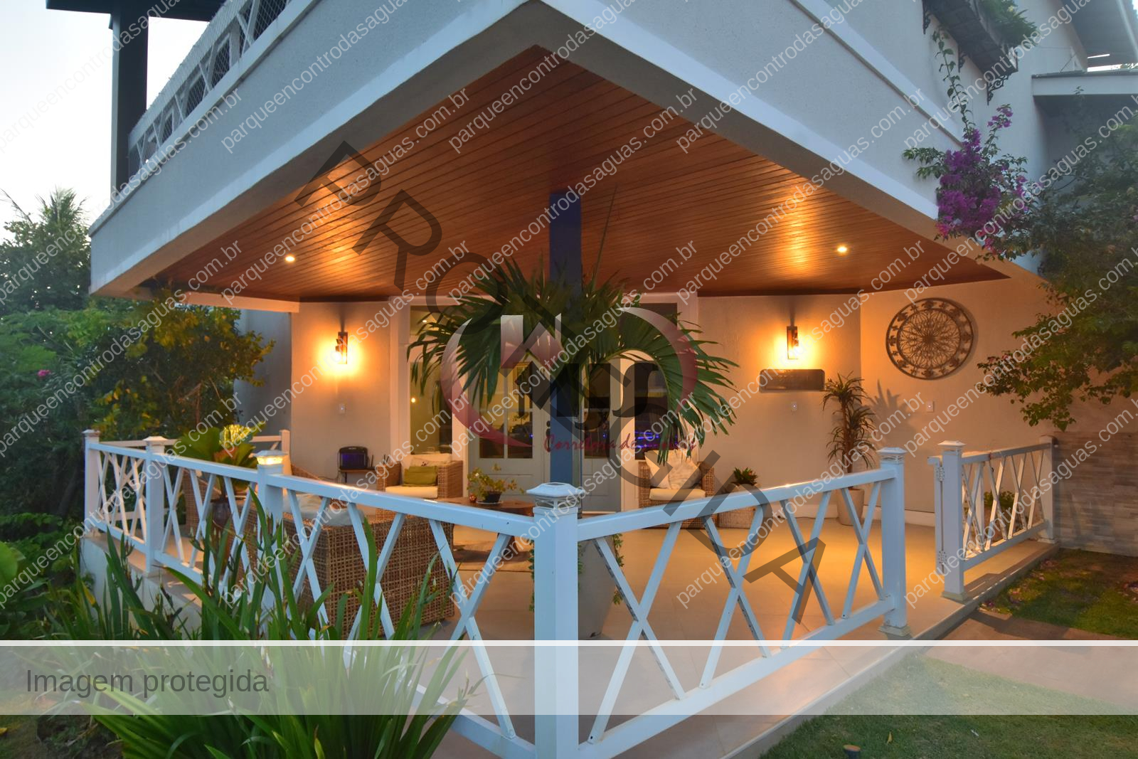 Condomínio Parque Encontro das Águas Lauro de Freitas (5,5km do Aeroporto de Salvador). Com terreno maravilhoso com 5.300m², numa das melhores quadras do condomínio, repleto de árvores frutíferas e pomar. Casa com 6 suítes sendo 3 no térreo e 3 no primeiro andar. A suíte master tem closet e varanda. Sala de estar e sala de jantar. Sala de Tv com escritório. Lavabo. Ampla cozinha gourmet. Tem também área de serviço, lavanderia, garagem coberta para 2 carros. Na área externa possui também piscina com amplo deck e quiosque com churrasqueira e banheiro. Painéis de geração de energia solar com 2 usinas on-grid totalizando 18kWp. Tomadas para carregamento de veículo elétrico/hibrido plugin na garagem.. Área construída total: 940m².