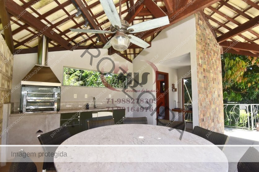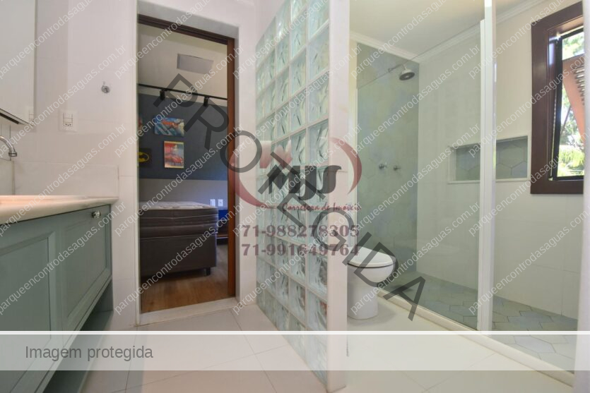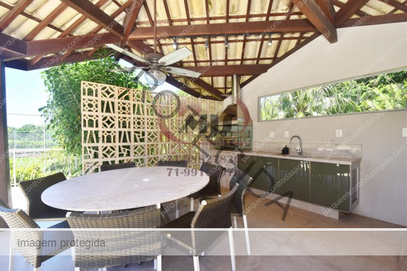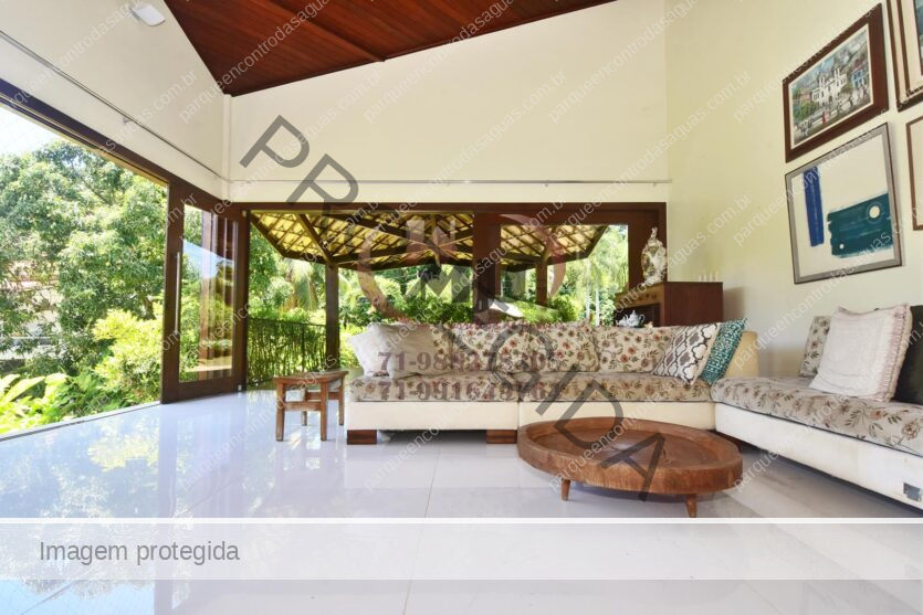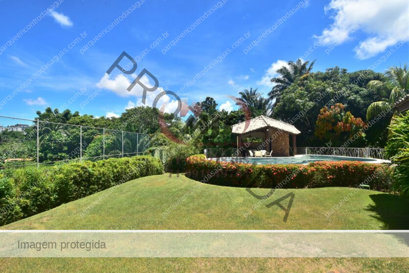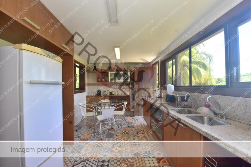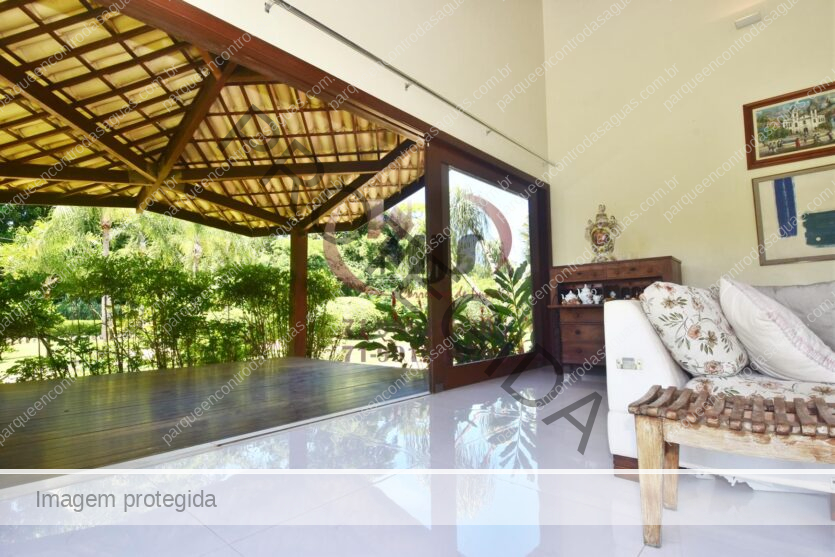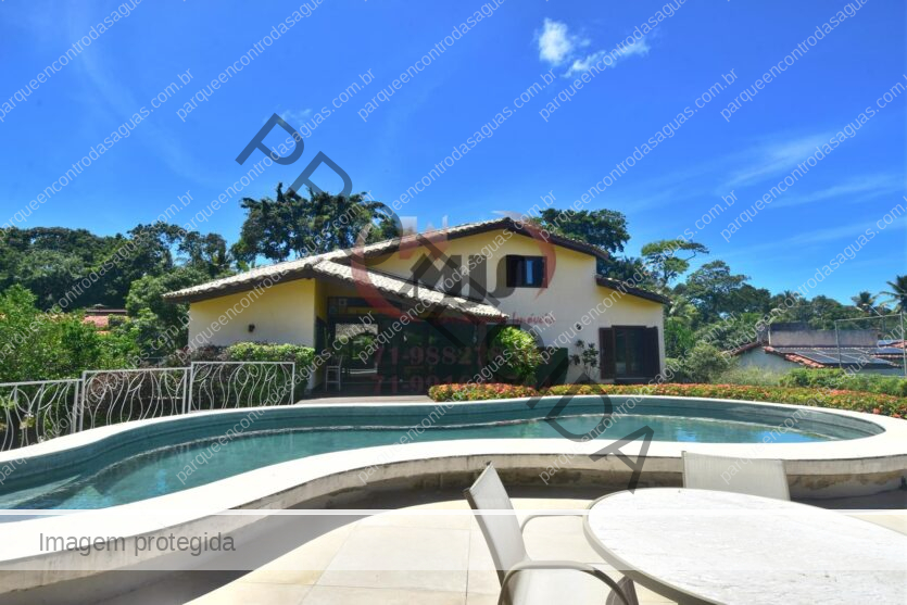 Condomínio Residencial Encontro das Águas casa a venda com cinco quartos sendo uma suíte com closet e hidromassagem. Além disso tem mais duas suítes com banheiro compartilhado. Varanda, jardim com paisagismo, sala de estar com pé direito duplo e sala de jantar. Lavabo, copa cozinha com armários. Área de serviço, dependência. Terreno totalmente plano, arborizado com 2.780m² em localização privilegiada do condomínio. Área construída aproximada de 430m².