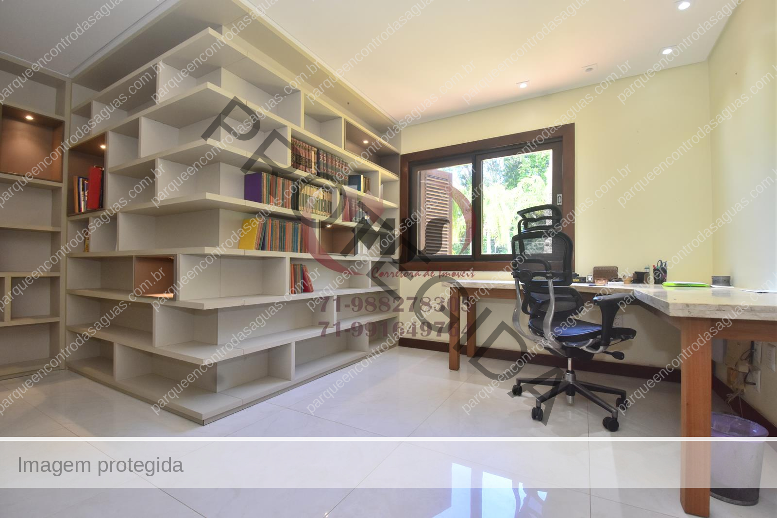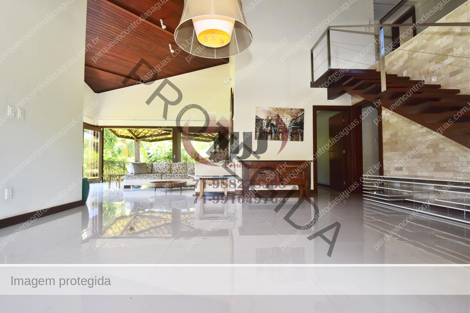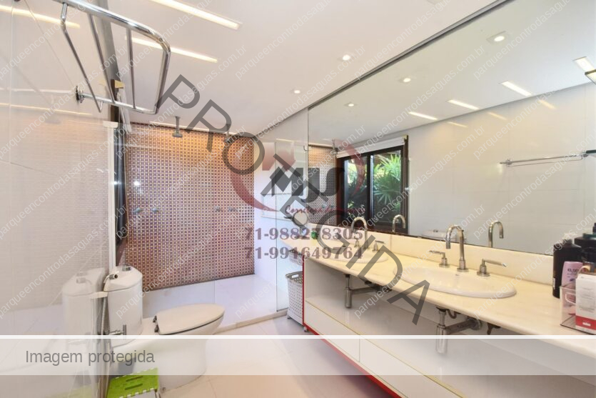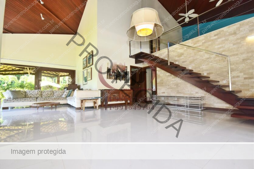 Condomínio Residencial Encontro das Águas casa a venda com cinco quartos sendo uma suíte com closet e hidromassagem. Além disso tem mais duas suítes com banheiro compartilhado. Varanda, jardim com paisagismo, sala de estar com pé direito duplo e sala de jantar. Lavabo, copa cozinha com armários. Área de serviço, dependência. Terreno totalmente plano, arborizado com 2.780m² em localização privilegiada do condomínio. Área construída aproximada de 430m².