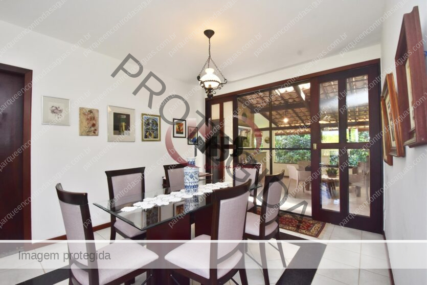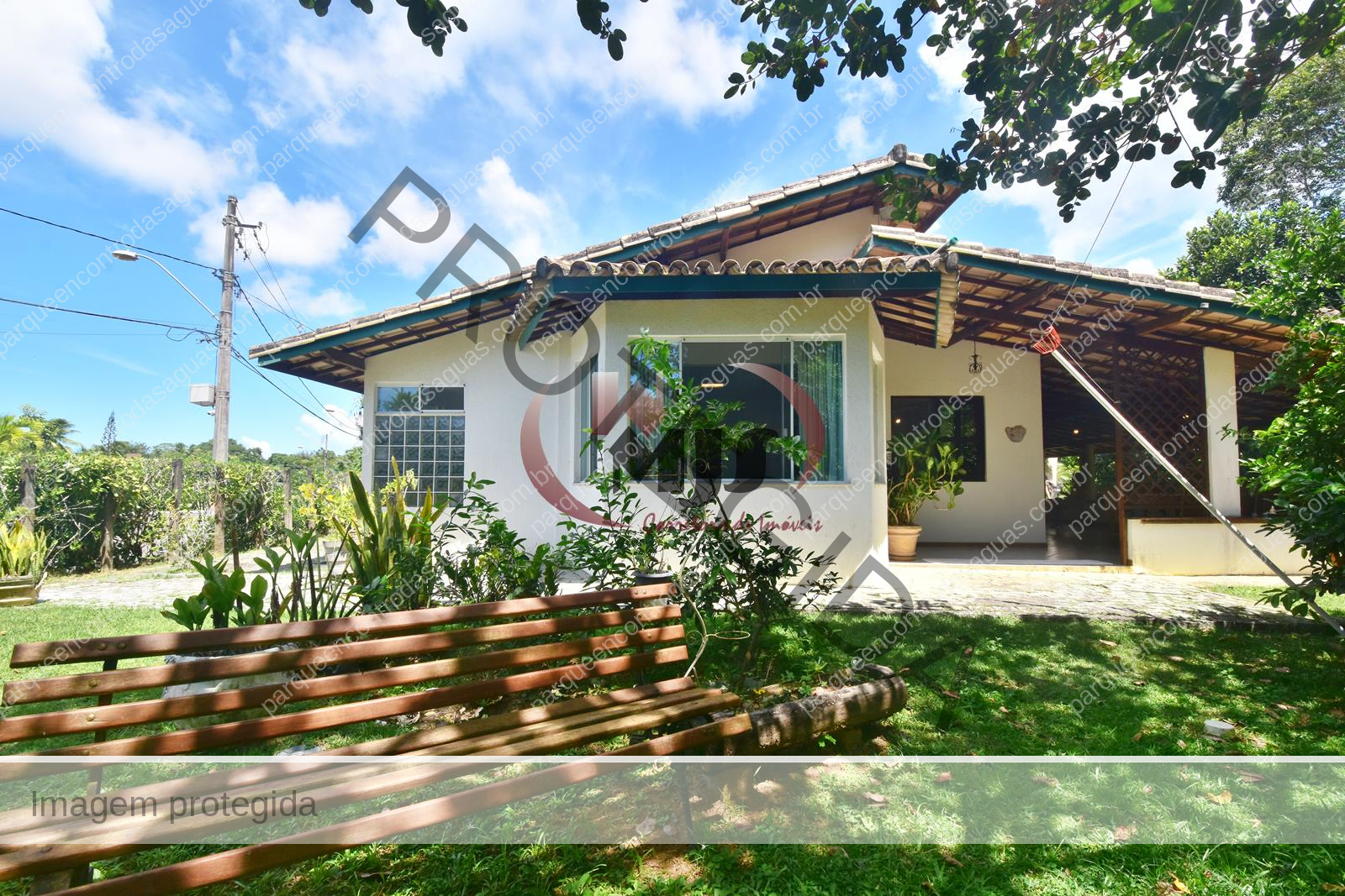 Parque Encontro das Águas Imobiliária Casa no Condomínio Encontro das Águas Lauro de Freitas Bahia (5,5km do Aeroporto de Salvador). Toda térrea, com 3 quartos sendo 1 suíte master com dois banheiros. Salas de estar e jantar. Ampla varanda gourmet com cozinha de apoio e uma agradável integração com a mata nativa que compõe o terreno. Garagem coberta para 2 carros, área de serviço, dependência de empregada, pomar com várias árvores frutíferas. Terreno com 3.400m². Área construída aproximada: 180m².